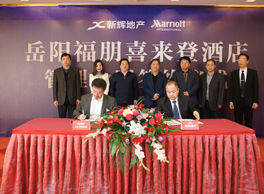 3月26日下午,岳阳福朋喜来登酒店项目签约仪式在南湖宾馆举行,区工委书记文春方主持签约仪式,区工委副书记、管委会主任谢春生致辞,区领导黄小年、何厚德,万豪国际集团中国区酒店业务发展高级副总裁林聪、岳阳市新辉房地产开发有限公司董事长何新辉及相关负责人出席签约仪式。