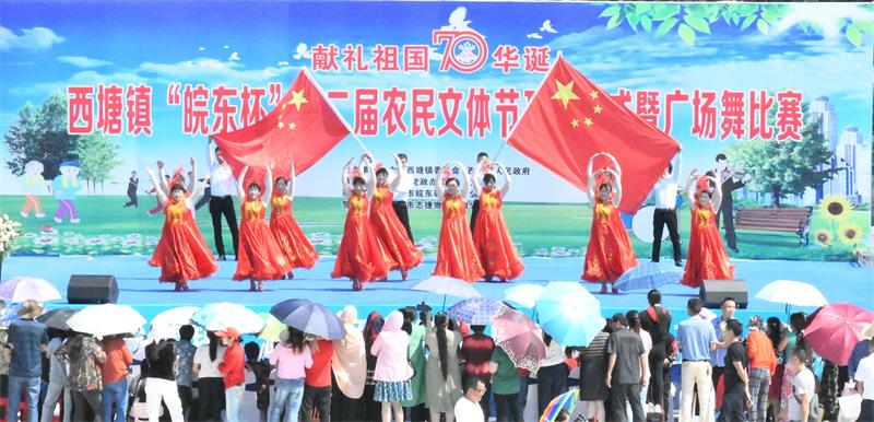 为进一步丰富群众精神文化生活,喜迎新中国成立七十周年,9月20日,西塘镇昆山小学锣鼓喧天,热闹非凡,以“献礼新中国七十华诞”为主题的西塘镇“皖东杯”第二届农民文体节在这里隆重开幕。来自全镇的20支队伍,共计800余名群众参加了开幕式启动仪式。