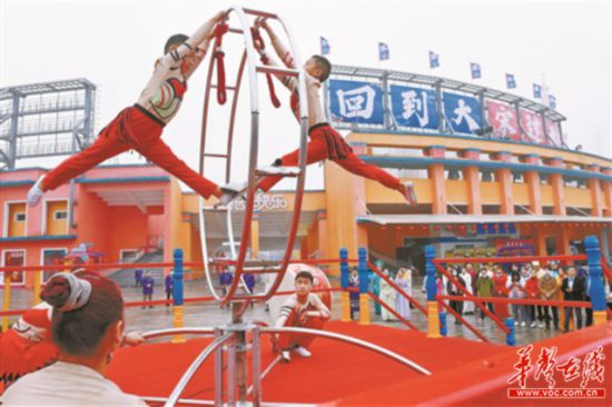 长沙世界之窗开展“回到大宋过大年”游园活动,游客现场欣赏民俗文化表演。(记者 徐行 摄)