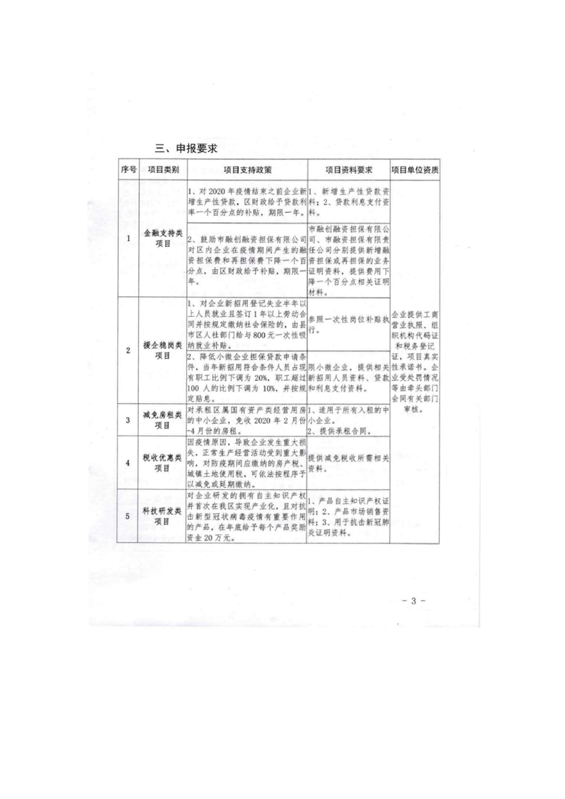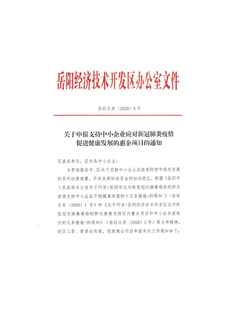 关于申报支持中小企业应对新冠肺炎疫情促进健康发展的惠企项目的通知