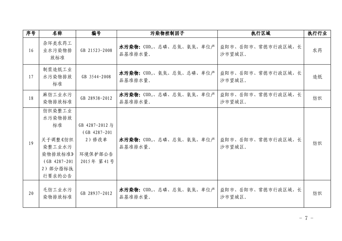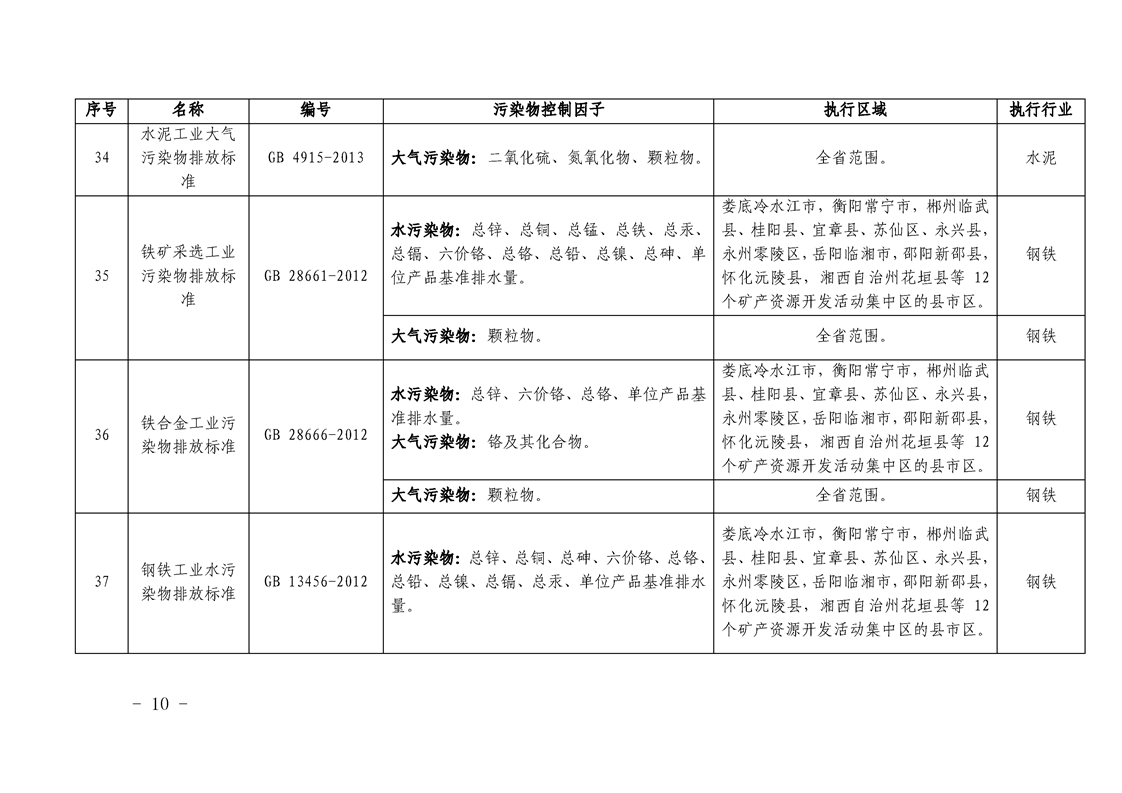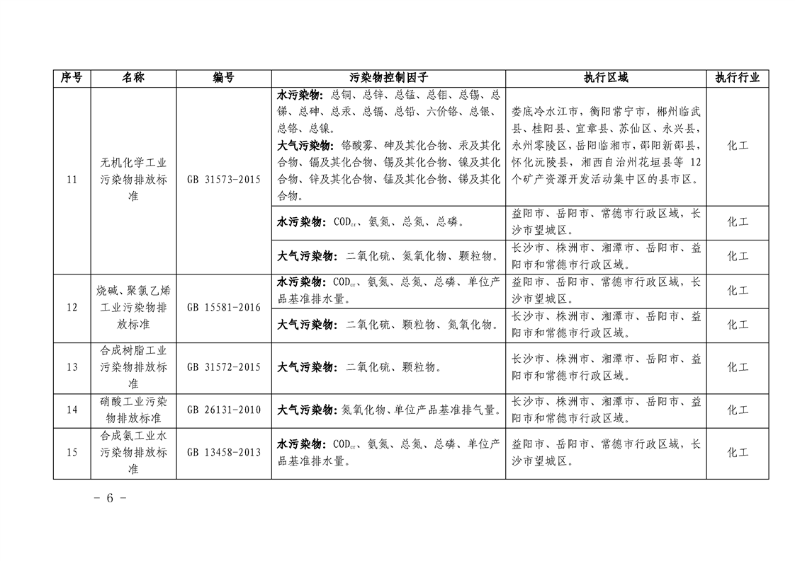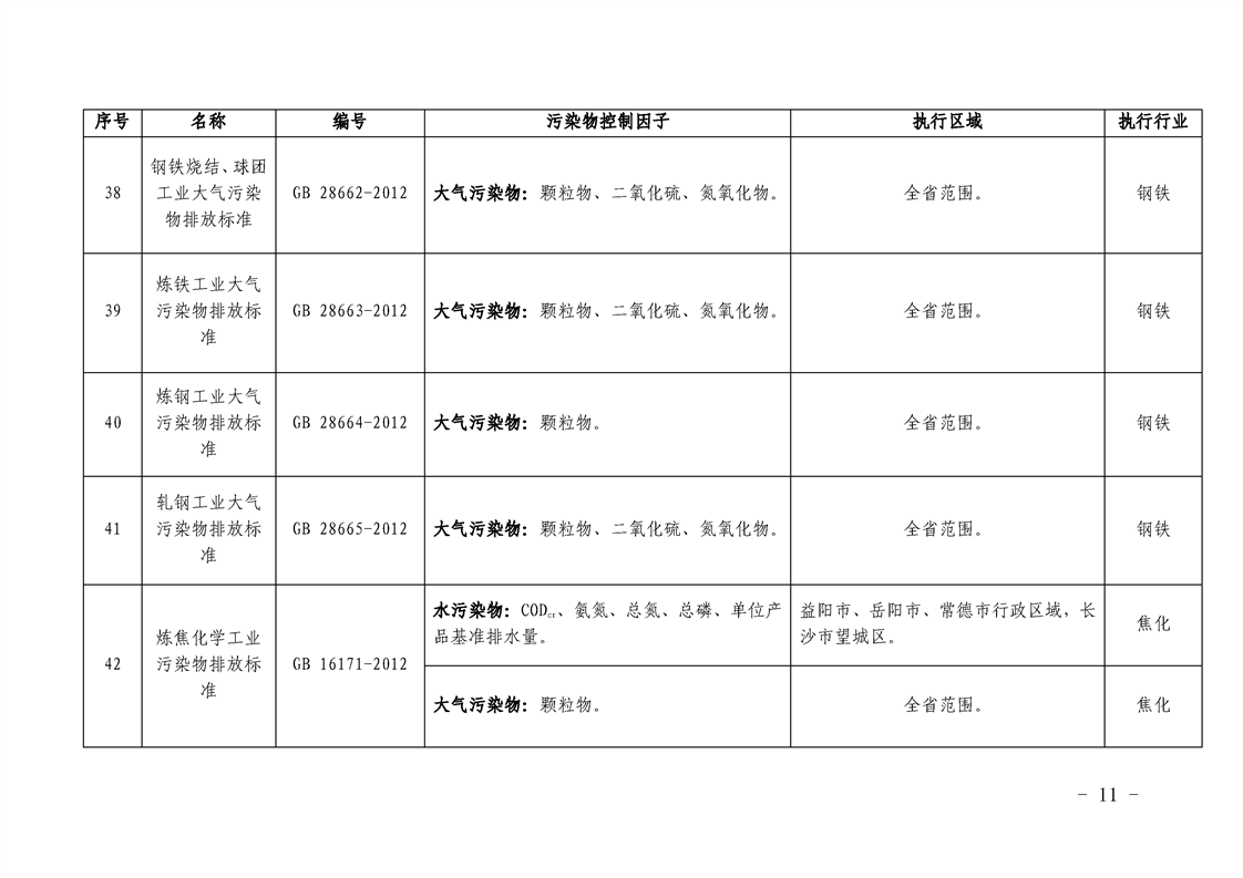 湖南省生态环境厅关于执行污染物特别排放限值(第一批)的公告