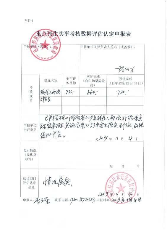 重点民生实事考核数据评估认定申请表和经费支出情况统计表