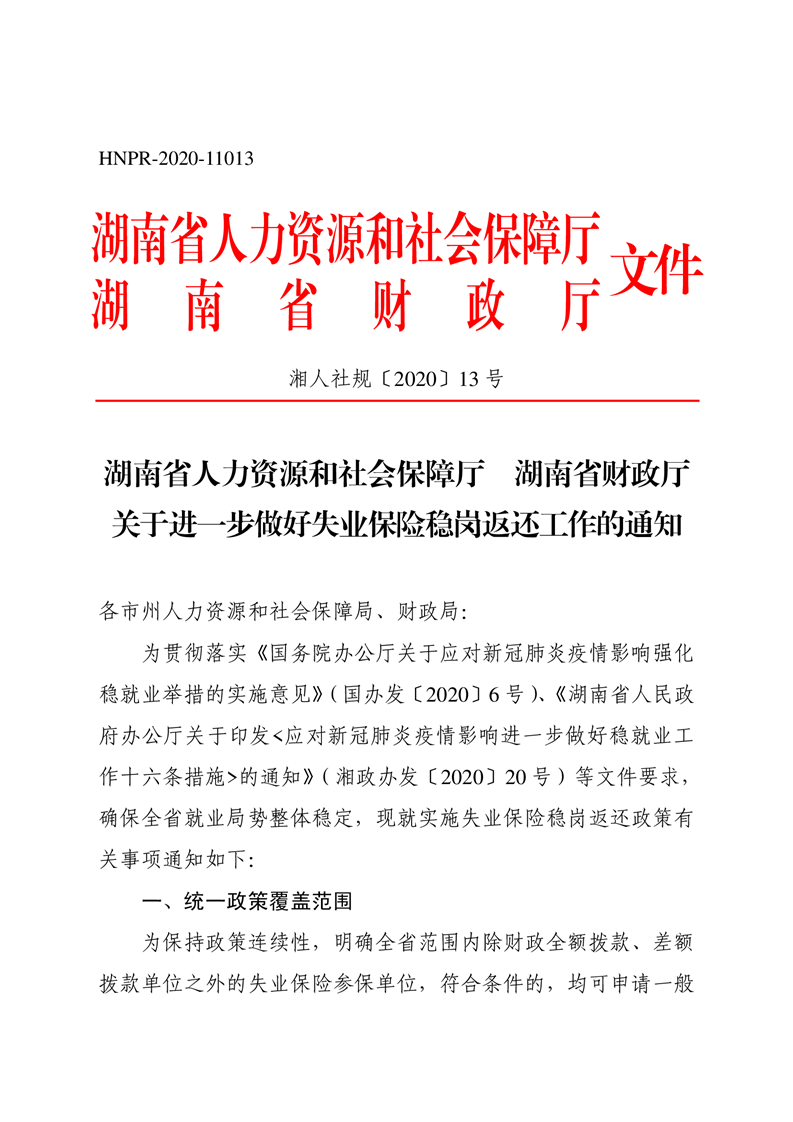 湖南省财政厅关于进一步做好失业保险稳岗返还工作的通知
