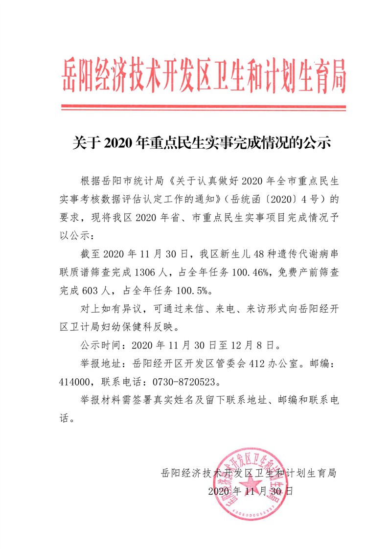 关于2020年重点民生实事完成情况公示