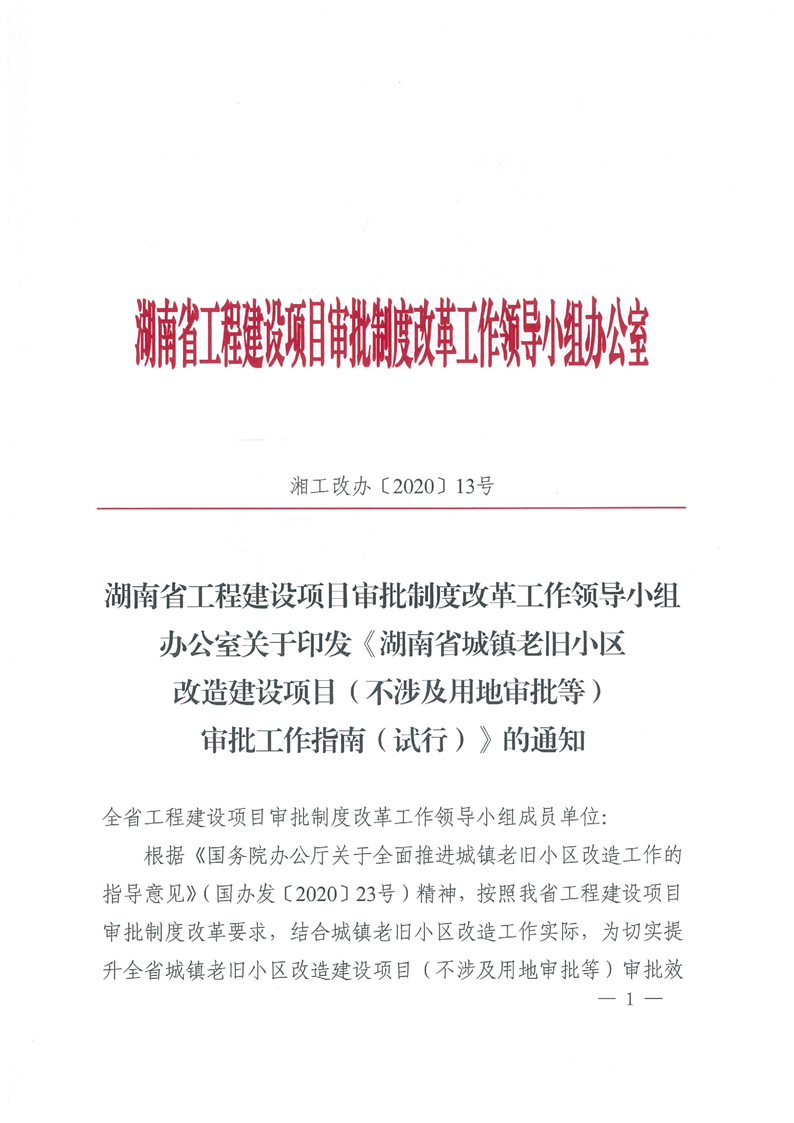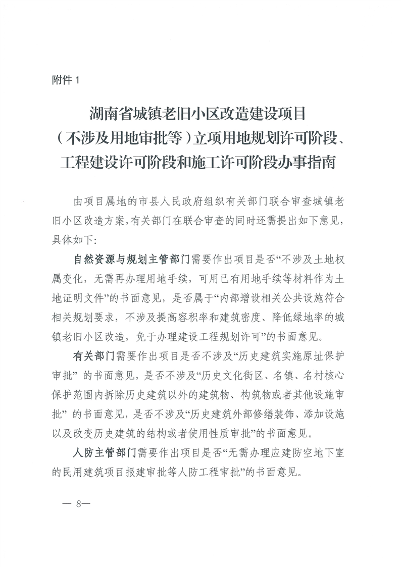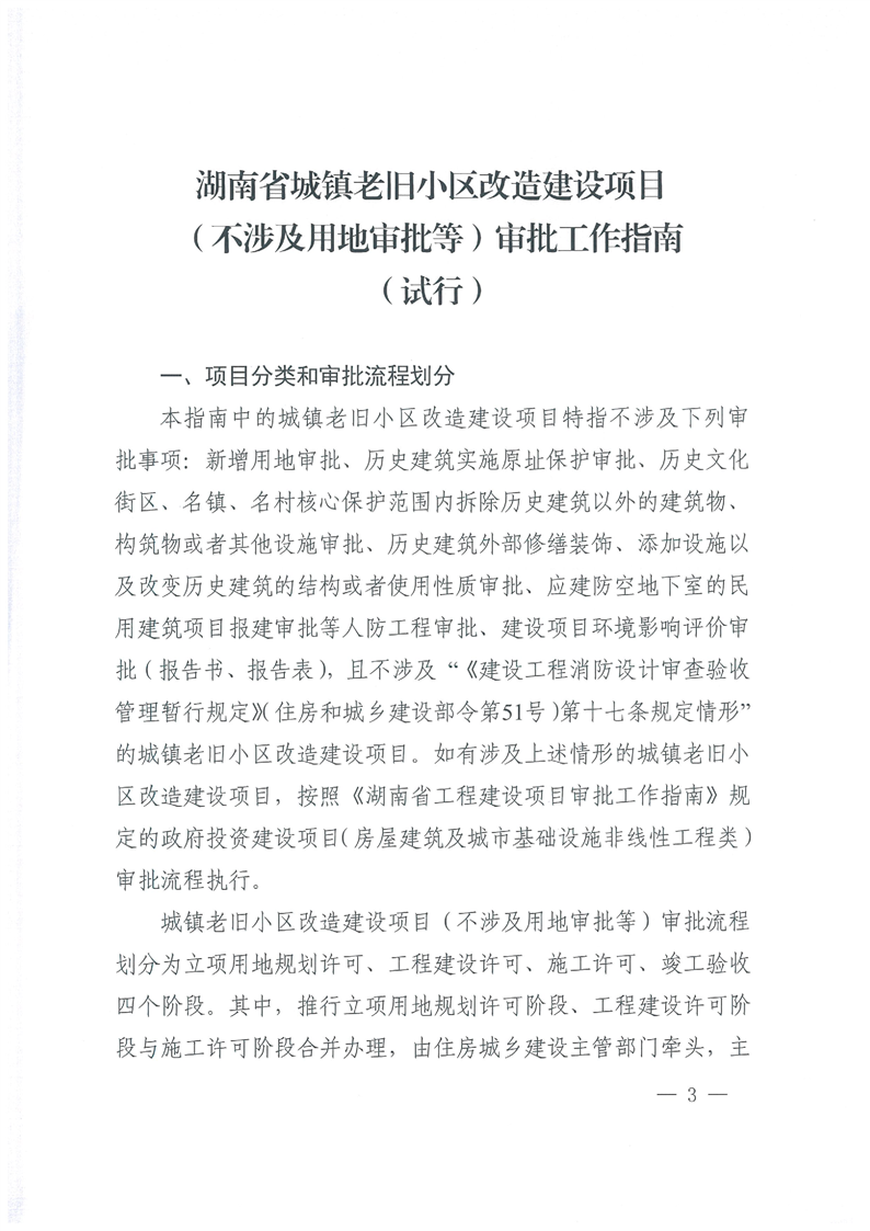 印发版:湖南省城镇老旧小区改造建设项目(不涉及用地审批)审批工作指南
