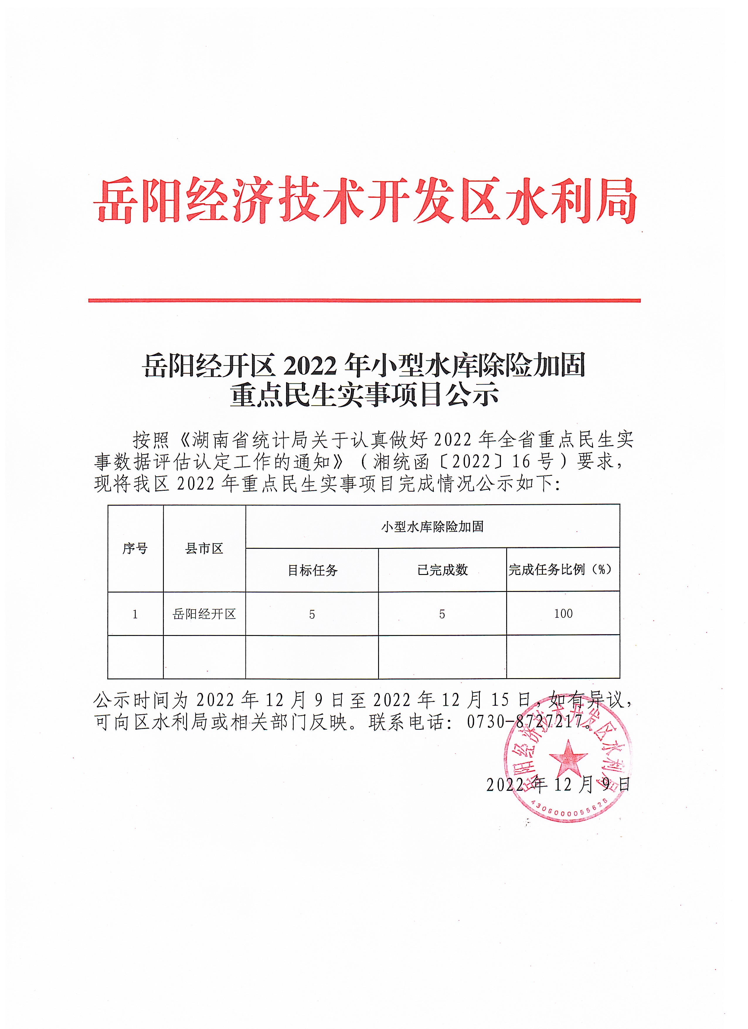 岳阳经开区2022年小型水库除险加固重点民生实事项目公示