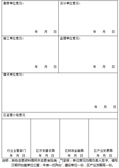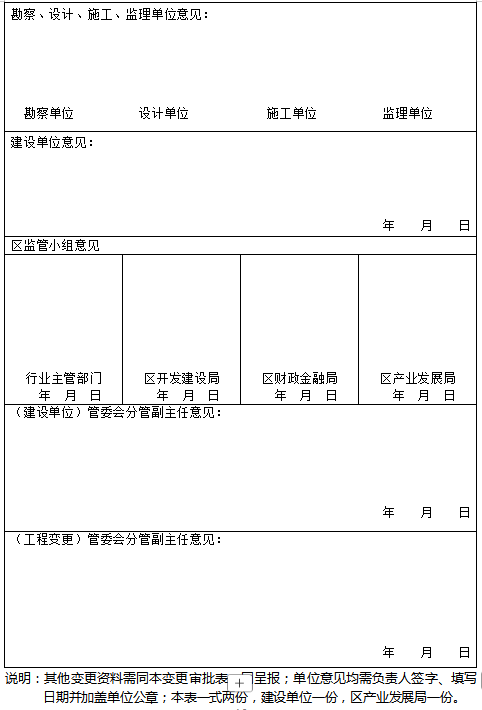 第四条 政府投资项目工程变更监督管理工作由分管区产业发展局的管委会副主任牵头,由区产业发展局、区财政金融局、区开发建设局和相关行业监管部门组成工程变更监管小组,具体负责工程变更的审核并提出处理意见。