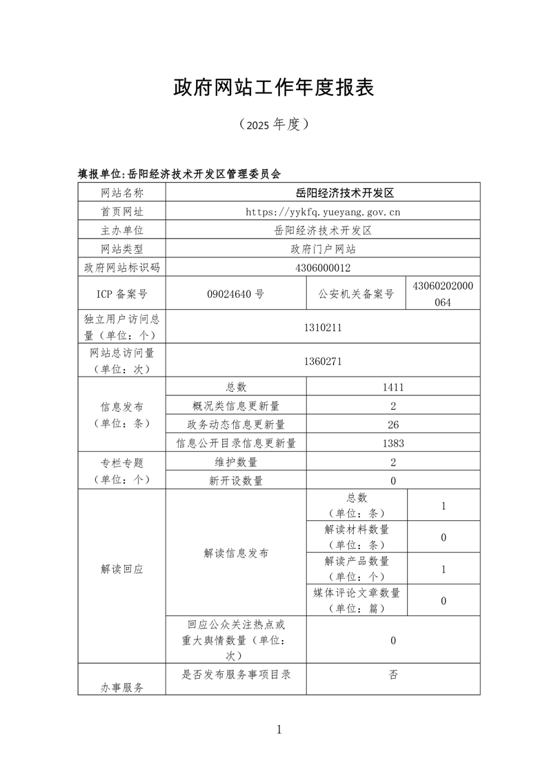 岳阳经济技术开发区2025年度政府网站工作年度报表