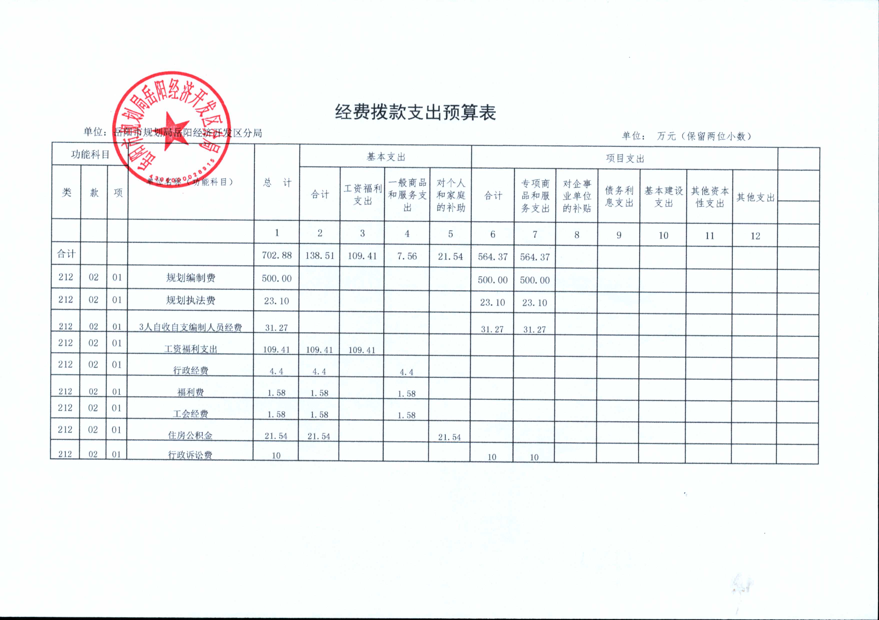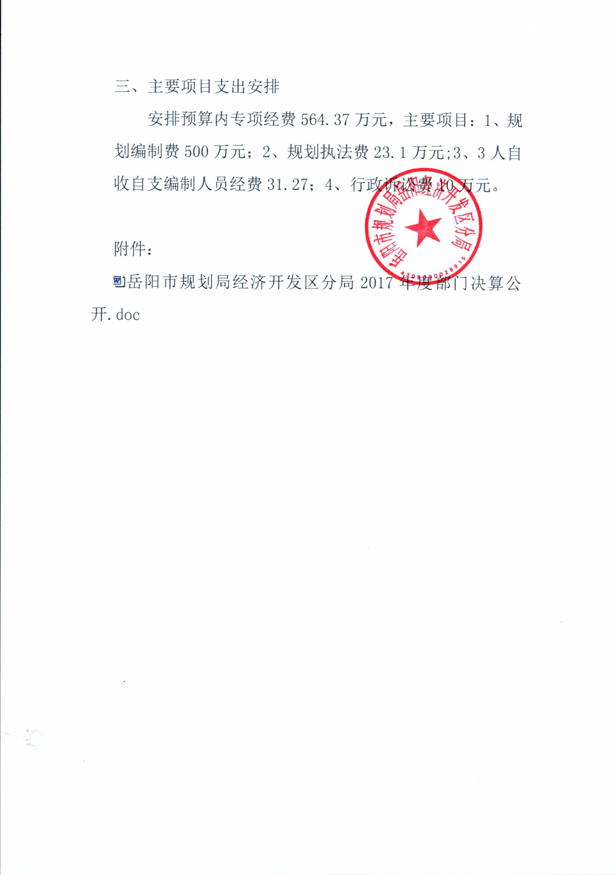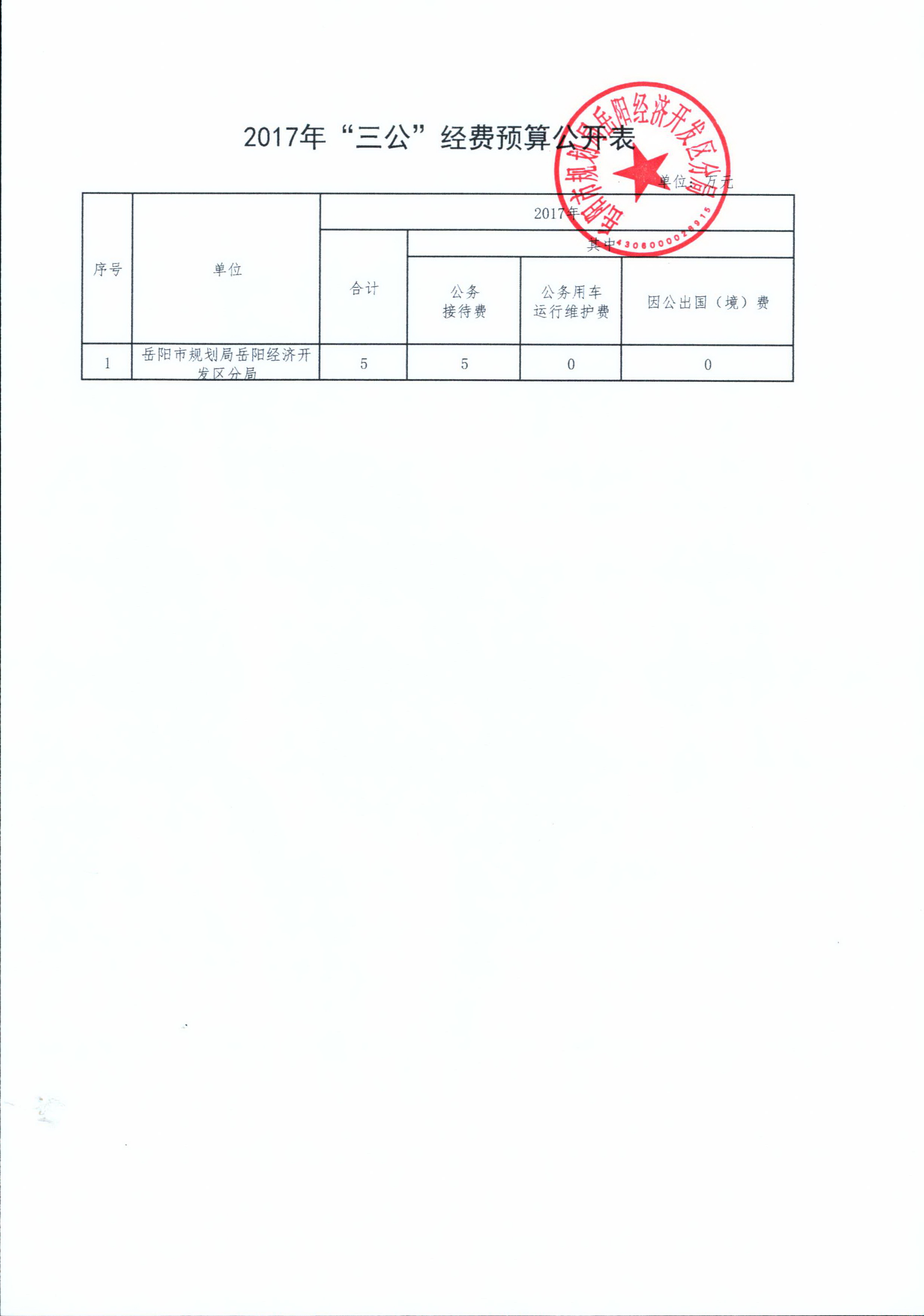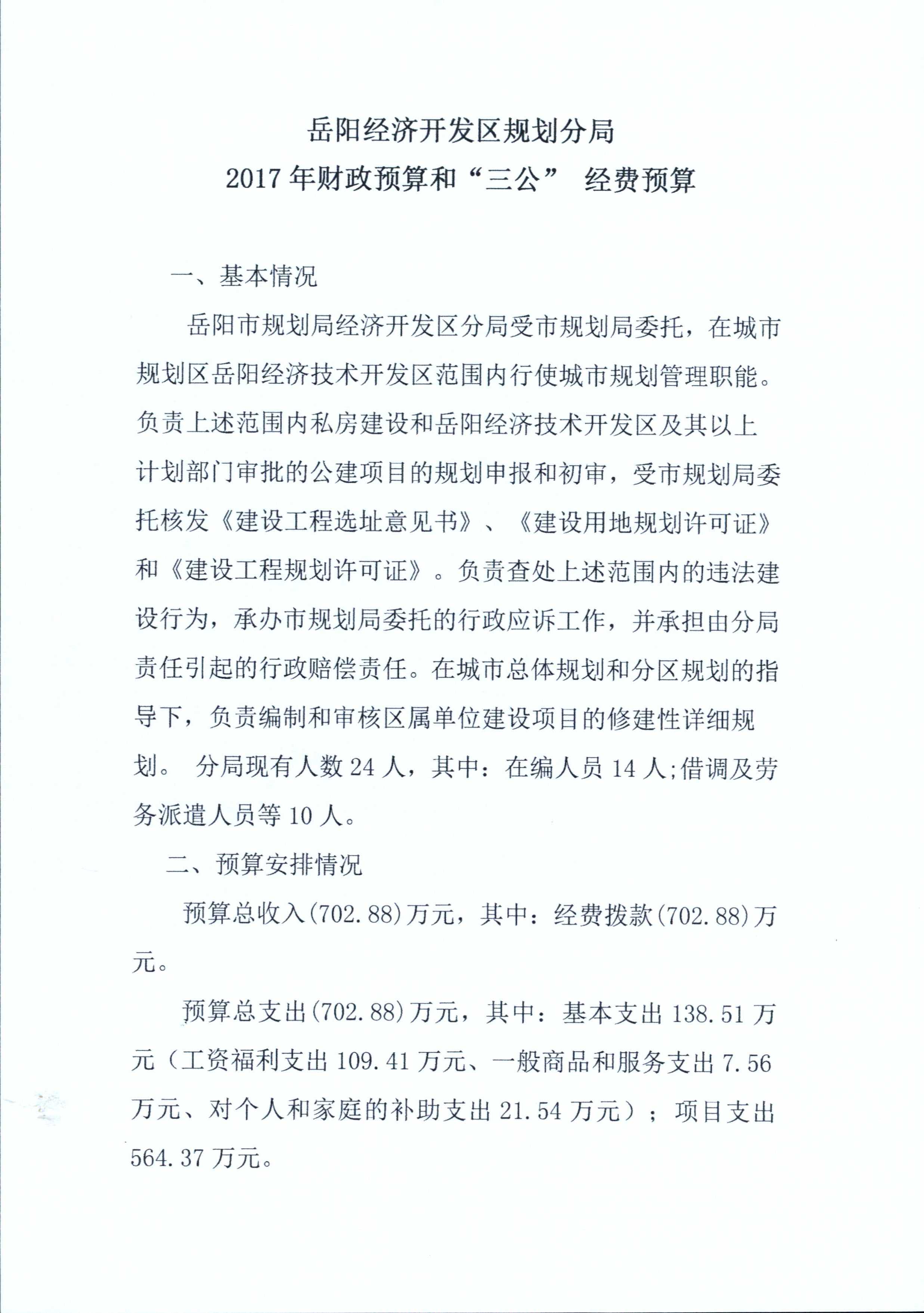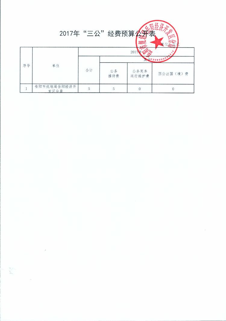 岳阳经济开发区规划分局2017年财政预算和“三公”经费预算