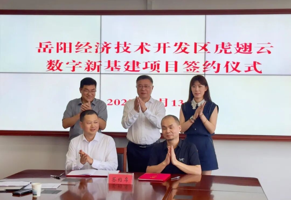 6月13日下午,岳阳经济技术开发区举行虎翅云数字新基建项目签约仪式,市政协副主席、经开区党工委第一书记林军华,区党工委副书记、管委会主任徐杰峰,江苏老虎云科技股份有限公司董事长吴邦江出席仪式,区党工委委员、管委会副主任许克军及区产业发展局、财政金融局、国资公司负责人等参加。