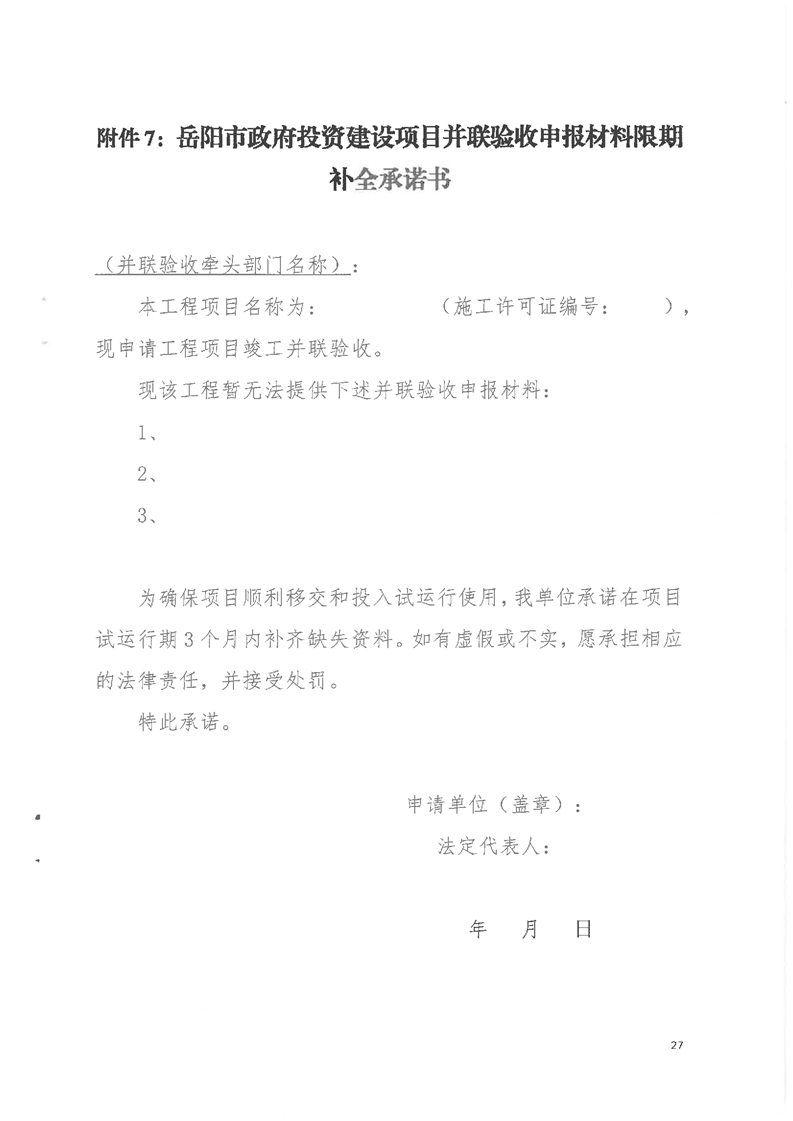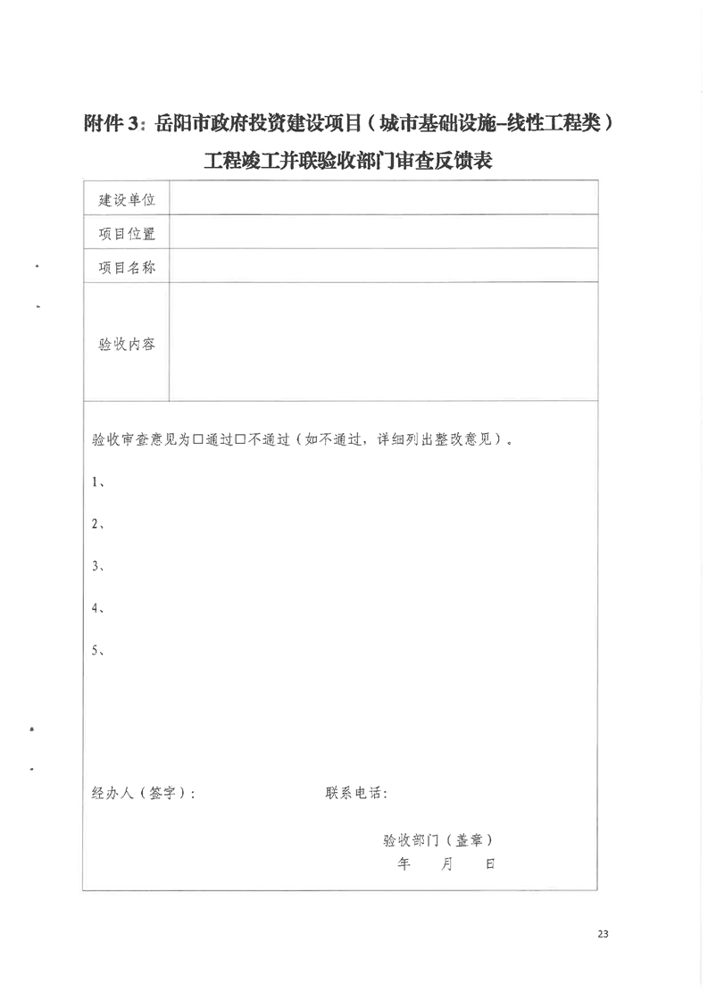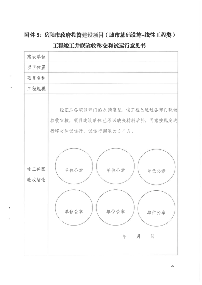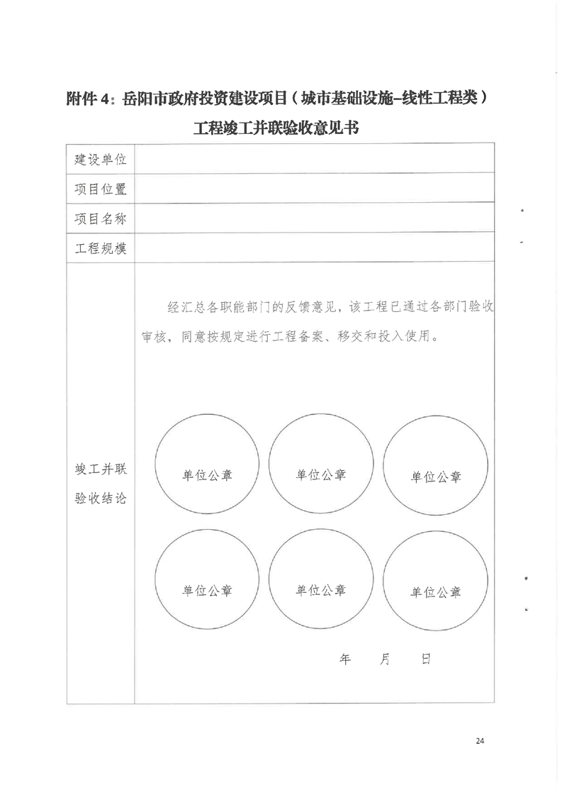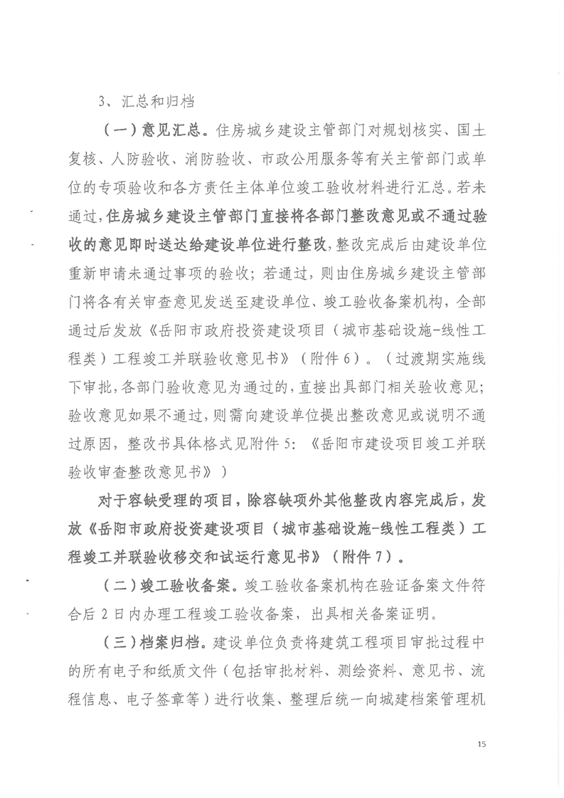 关于印发《岳阳市政府投资建设项目(城市基础设施一线性工程类)竣工并联验收实施方案(试行)》和《岳阳市政府投资建设项目(城市基础设施一线性工程类)工程竣工并联验收办理指南(试行)的通知